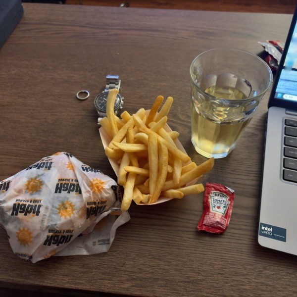 夕飯は好物のハビットバーガー、ジュースまで飲んでしまい。。。