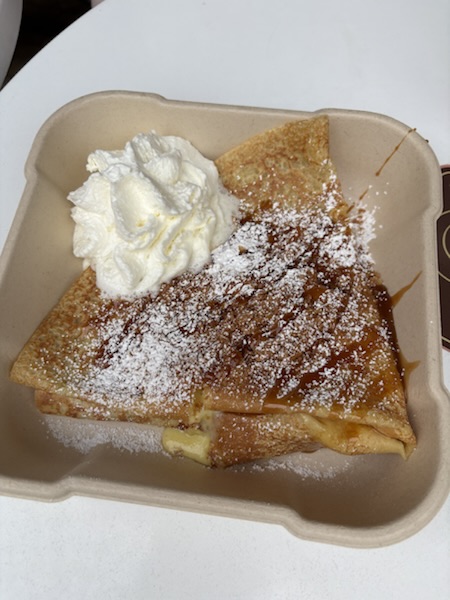 妻が見つけたカフェにて、クレープとコーヒー。もうすぐ3歳の娘は、ヨーグルトパフェを食べてご満悦でした。